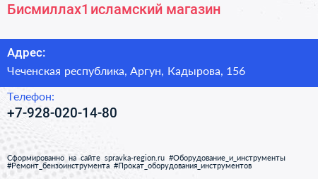 Бисмиллах1, исламский магазин по адресу Чеченская республика, Аргун, Кадырова, 156 в дальнейшем Организация, размещена в следующих категориях: