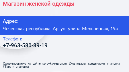 Магазин женской одежды по адресу Чеченская республика, Аргун, улица Мельничная, 19а в дальнейшем Организация, размещена в следующих категориях: