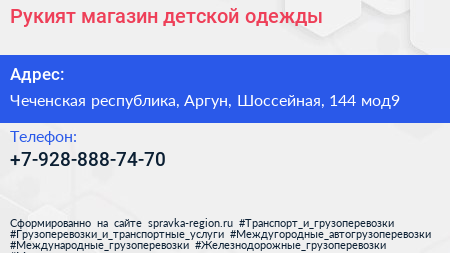 Рукият, магазин детской одежды по адресу Чеченская республика, Аргун, Шоссейная, 144 мод9 в дальнейшем Организация, размещена в следующих категориях: