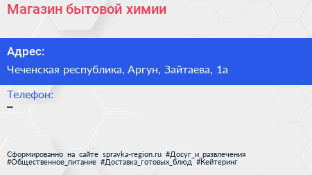 Магазин бытовой химии по адресу Чеченская республика, Аргун, Зайтаева, 1а в дальнейшем Организация, размещена в следующих категориях:
