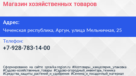 Магазин хозяйственных товаров по адресу Чеченская республика, Аргун, улица Мельничная, 25 в дальнейшем Организация, размещена в следующих категориях: