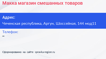 Макка, магазин смешанных товаров по адресу Чеченская республика, Аргун, Шоссейная, 144 мод11 в дальнейшем Организация, размещена в следующих категориях:
