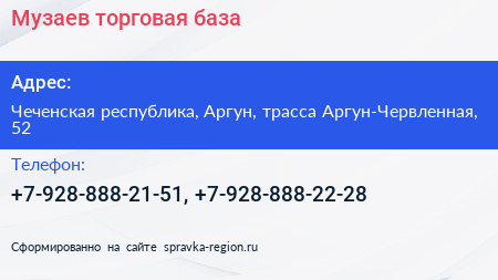 Адрес: Чеченская республика, Аргун, улица Аксактемирова, 25д