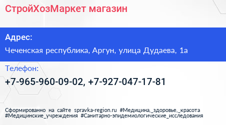 СтройХозМаркет, магазин по адресу Чеченская республика, Аргун, улица Дудаева, 1а в дальнейшем Организация, размещена в следующих категориях: