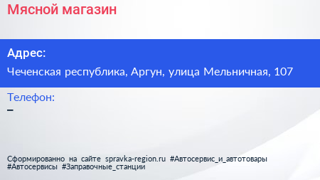 Мясной магазин по адресу Чеченская республика, Аргун, улица Мельничная, 107 в дальнейшем Организация, размещена в следующих категориях: