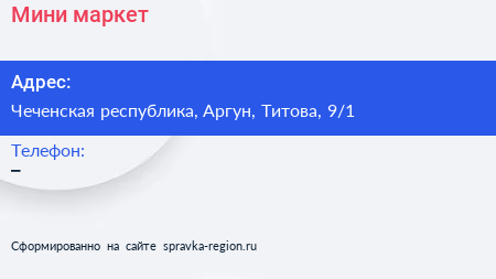 Мини-маркет по адресу Чеченская республика, Аргун, Титова, 9/1 в дальнейшем Организация, размещена в следующих категориях: