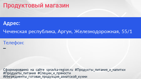 Продуктовый магазин по адресу Чеченская республика, Аргун, Железнодорожная, 55/1 в дальнейшем Организация, размещена в следующих категориях: