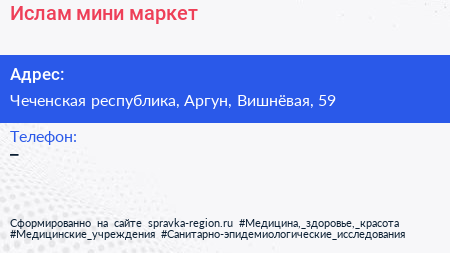 Ислам, мини-маркет по адресу Чеченская республика, Аргун, Вишнёвая, 59 в дальнейшем Организация, размещена в следующих категориях: