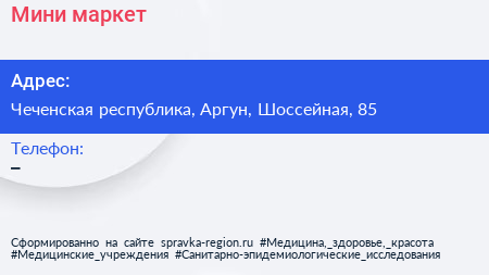 Мини-маркет по адресу Чеченская республика, Аргун, Шоссейная, 85 в дальнейшем Организация, размещена в следующих категориях: