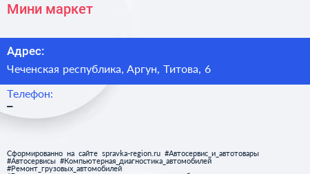 Мини-маркет по адресу Чеченская республика, Аргун, Титова, 6 в дальнейшем Организация, размещена в следующих категориях: