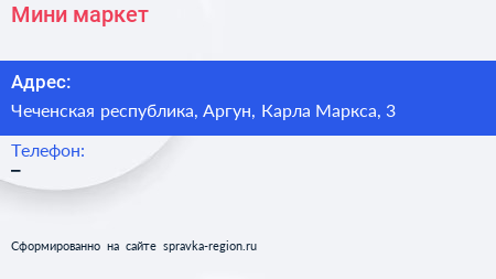 Мини-маркет по адресу Чеченская республика, Аргун, Карла Маркса, 3 в дальнейшем Организация, размещена в следующих категориях: