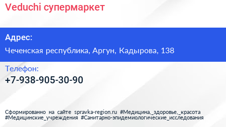 Veduchi, супермаркет по адресу Чеченская республика, Аргун, Кадырова, 138 в дальнейшем Организация, размещена в следующих категориях: