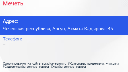 Мечеть по адресу Чеченская республика, Аргун, Ахмата Кадырова, 45 в дальнейшем Организация, размещена в следующих категориях: