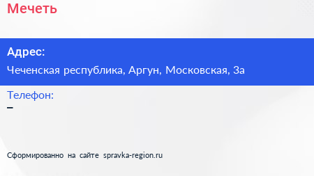 Мечеть по адресу Чеченская республика, Аргун, Московская, 3а в дальнейшем Организация, размещена в следующих категориях: