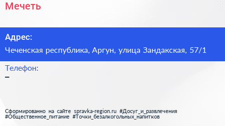 Мечеть по адресу Чеченская республика, Аргун, улица Зандакская, 57/1 в дальнейшем Организация, размещена в следующих категориях: