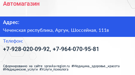 Автомагазин по адресу Чеченская республика, Аргун, Шоссейная, 111в в дальнейшем Организация, размещена в следующих категориях: