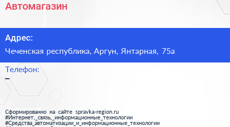 Автомагазин по адресу Чеченская республика, Аргун, Янтарная, 75а в дальнейшем Организация, размещена в следующих категориях: