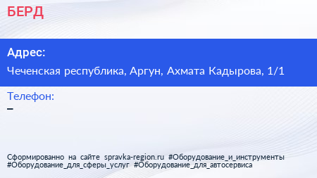 БЕРД по адресу Чеченская республика, Аргун, Ахмата Кадырова, 1/1 в дальнейшем Организация, размещена в следующих категориях: