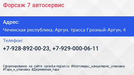 Форсаж 7, автосервис по адресу Чеченская республика, Аргун, трасса Грозный-Аргун, 4 в дальнейшем Организация, размещена в следующих категориях: