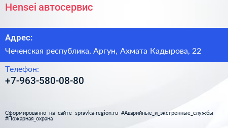 Hensei, автосервис по адресу Чеченская республика, Аргун, Ахмата Кадырова, 22 в дальнейшем Организация, размещена в следующих категориях: