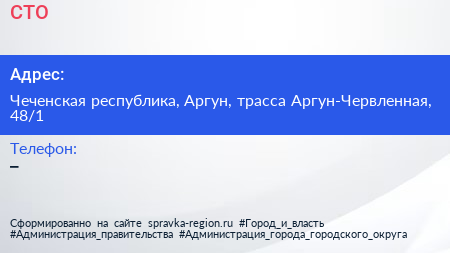 СТО по адресу Чеченская республика, Аргун, трасса Аргун-Червленная, 48/1 в дальнейшем Организация, размещена в следующих категориях: