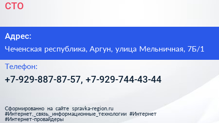СТО по адресу Чеченская республика, Аргун, улица Мельничная, 7Б/1 в дальнейшем Организация, размещена в следующих категориях: