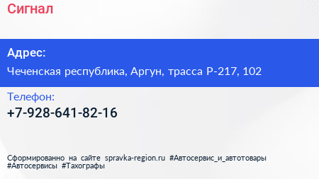 Сигнал по адресу Чеченская республика, Аргун, трасса Р-217, 102 в дальнейшем Организация, размещена в следующих категориях: