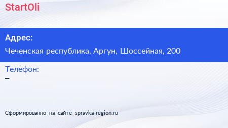 StartOli по адресу Чеченская республика, Аргун, Шоссейная, 200 в дальнейшем Организация, размещена в следующих категориях: