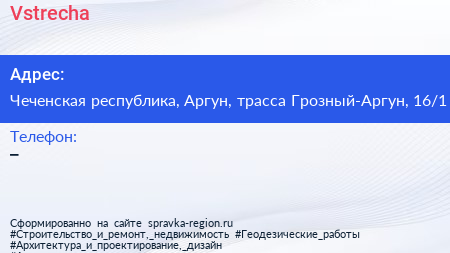 Vstrecha по адресу Чеченская республика, Аргун, трасса Грозный-Аргун, 16/1 в дальнейшем Организация, размещена в следующих категориях: