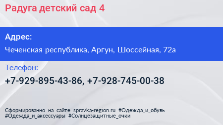 Радуга, детский сад №4 по адресу Чеченская республика, Аргун, Шоссейная, 72а в дальнейшем Организация, размещена в следующих категориях: