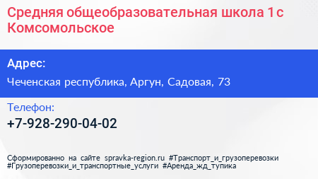 Средняя общеобразовательная школа № 1 с. Комсомольское по адресу Чеченская республика, Аргун, Садовая, 73 в дальнейшем Организация, размещена в следующих категориях: