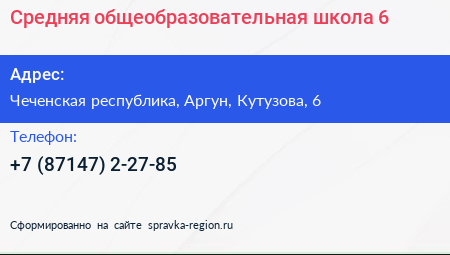Средняя общеобразовательная школа №6 по адресу Чеченская республика, Аргун, Кутузова, 6 в дальнейшем Организация, размещена в следующих категориях: