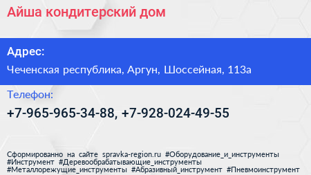 Айша, кондитерский дом по адресу Чеченская республика, Аргун, Шоссейная, 113а в дальнейшем Организация, размещена в следующих категориях:
