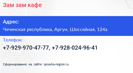 Адрес: Чеченская республика, Аргун, Шоссейная, 113и