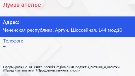 Луиза, ателье по адресу Чеченская республика, Аргун, Шоссейная, 144 мод10 в дальнейшем Организация, размещена в следующих категориях: