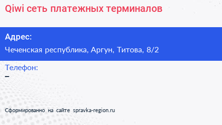 Qiwi, сеть платежных терминалов по адресу Чеченская республика, Аргун, Титова, 8/2 в дальнейшем Организация, размещена в следующих категориях: