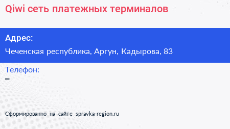 Qiwi, сеть платежных терминалов по адресу Чеченская республика, Аргун, Кадырова, 83 в дальнейшем Организация, размещена в следующих категориях: