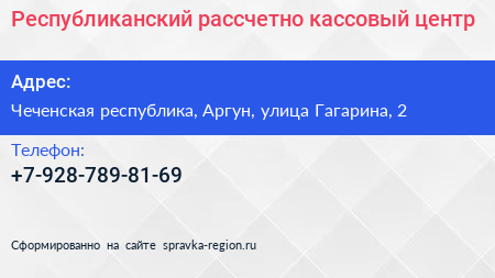 Республиканский рассчетно-кассовый центр по адресу Чеченская республика, Аргун, улица Гагарина, 2 в дальнейшем Организация, размещена в следующих категориях: