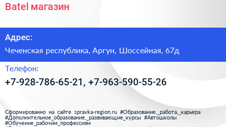 Batel, магазин по адресу Чеченская республика, Аргун, Шоссейная, 67д в дальнейшем Организация, размещена в следующих категориях: