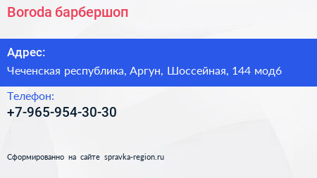 Boroda, барбершоп по адресу Чеченская республика, Аргун, Шоссейная, 144 мод6 в дальнейшем Организация, размещена в следующих категориях: