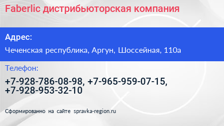 Faberlic, дистрибьюторская компания по адресу Чеченская республика, Аргун, Шоссейная, 110а в дальнейшем Организация, размещена в следующих категориях: