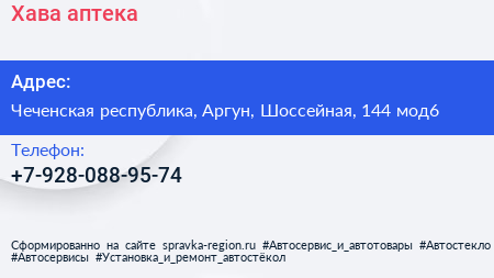Хава, аптека по адресу Чеченская республика, Аргун, Шоссейная, 144 мод6 в дальнейшем Организация, размещена в следующих категориях: