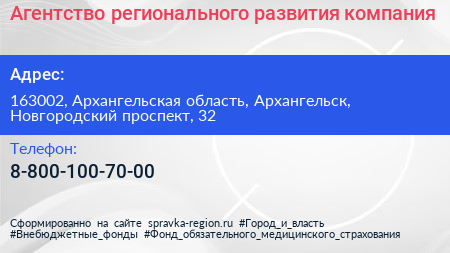 Агентство регионального развития, компания по адресу 163002, Архангельская область, Архангельск, Новгородский проспект, 32 в дальнейшем Организация, размещена в следующих категориях: