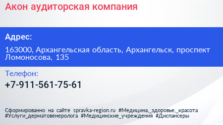 Акон, аудиторская компания по адресу 163000, Архангельская область, Архангельск, проспект Ломоносова, 135 в дальнейшем Организация, размещена в следующих категориях: