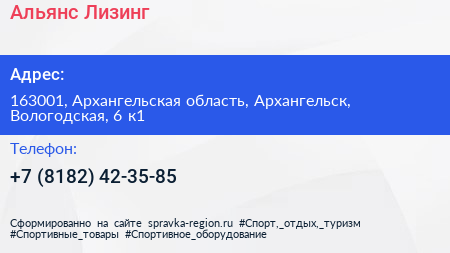 Альянс-Лизинг по адресу 163001, Архангельская область, Архангельск, Вологодская, 6 к1 в дальнейшем Организация, размещена в следующих категориях: