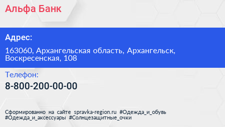 Альфа-Банк по адресу 163060, Архангельская область, Архангельск, Воскресенская, 108 в дальнейшем Организация, размещена в следующих категориях: