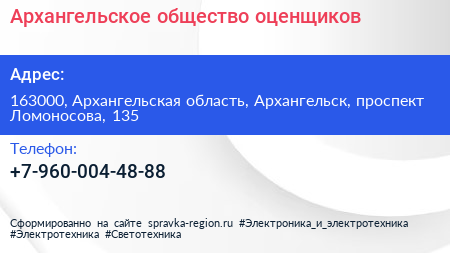 Архангельское общество оценщиков по адресу 163000, Архангельская область, Архангельск, проспект Ломоносова, 135 в дальнейшем Организация, размещена в следующих категориях: