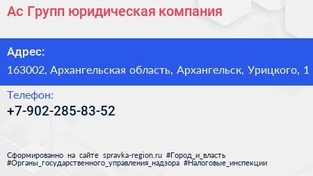 Ас-Групп, юридическая компания по адресу 163002, Архангельская область, Архангельск, Урицкого, 1 в дальнейшем Организация, размещена в следующих категориях: