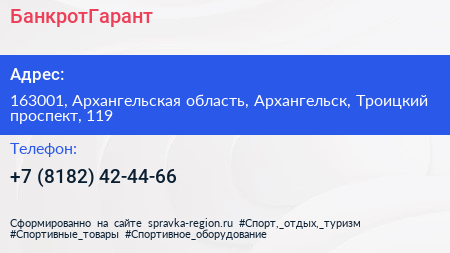 БанкротГарант по адресу 163001, Архангельская область, Архангельск, Троицкий проспект, 119 в дальнейшем Организация, размещена в следующих категориях: