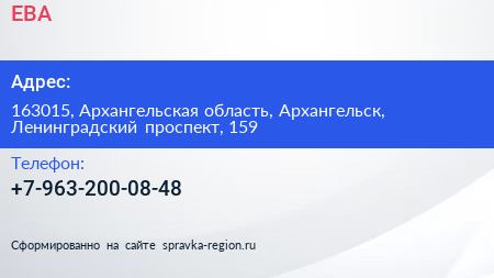 ЕВА по адресу 163015, Архангельская область, Архангельск, Ленинградский проспект, 159 в дальнейшем Организация, размещена в следующих категориях: